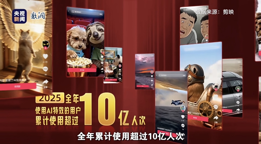 AI视频生成能力在过去的一年中进步明显,从家庭相册剪辑到日常vlog记录,曾经专属电影工业的运镜节奏、光影美学,如今只需指尖操作,就能融入普通人的视频作品,让“电影级转场”不再是专业创作者的专属。以剪映的AI特效功能为例,凭借“一键生成电影感”的便捷体验,成为许多创作者的首选。据介绍,2025年使用剪映AI特效功能的用户人次突破10亿。