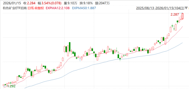 1月15日,有色板块全面上涨,白银、小金属表现强势。湖南白银涨超8%,华锡有色、华友钴业、金钼股份、中钨高新、赣锋锂业、中金岭南、锡业股份等跟涨。有色矿业ETF招商(159690)涨3.54%,盘中刷新上市以来新高。